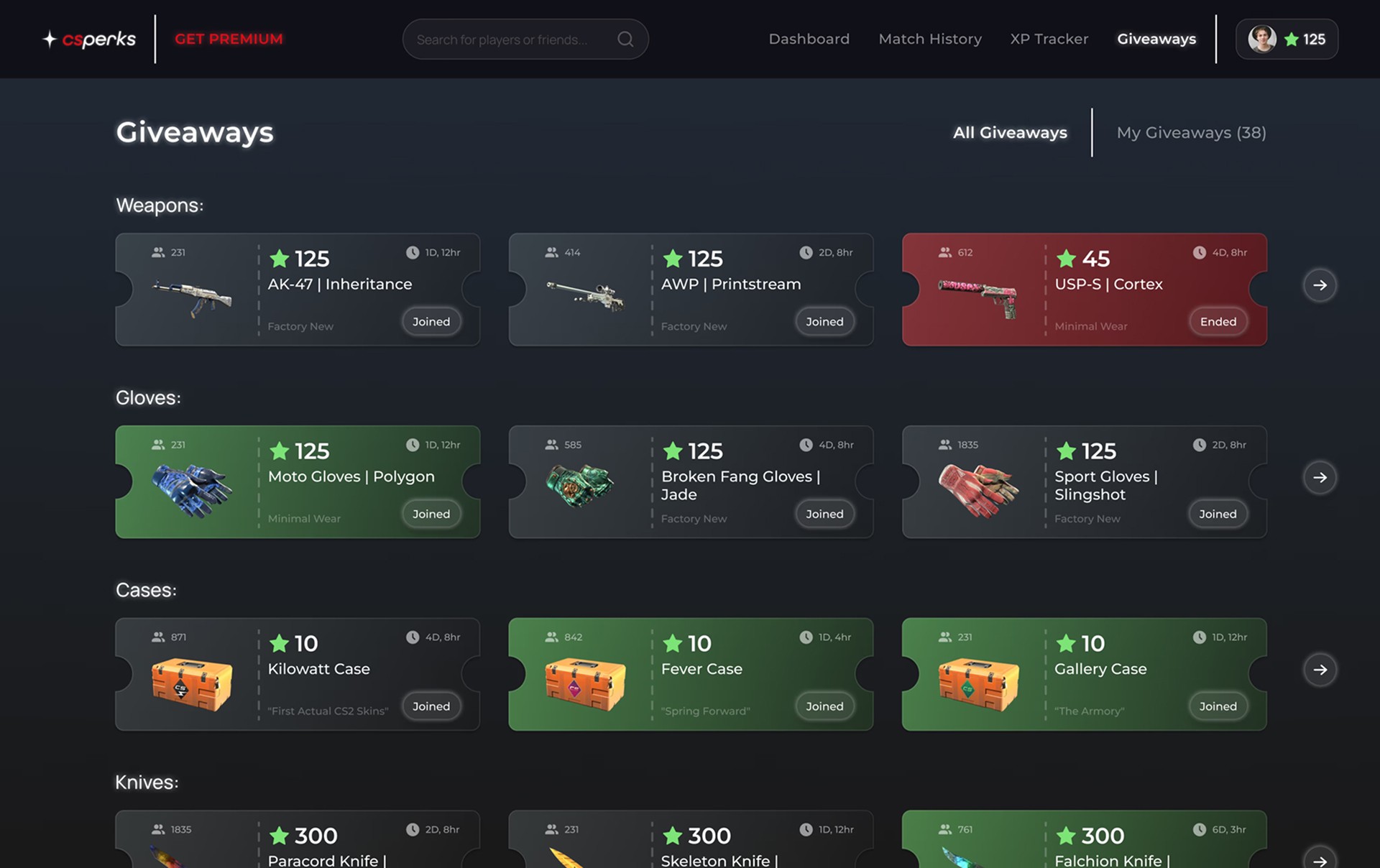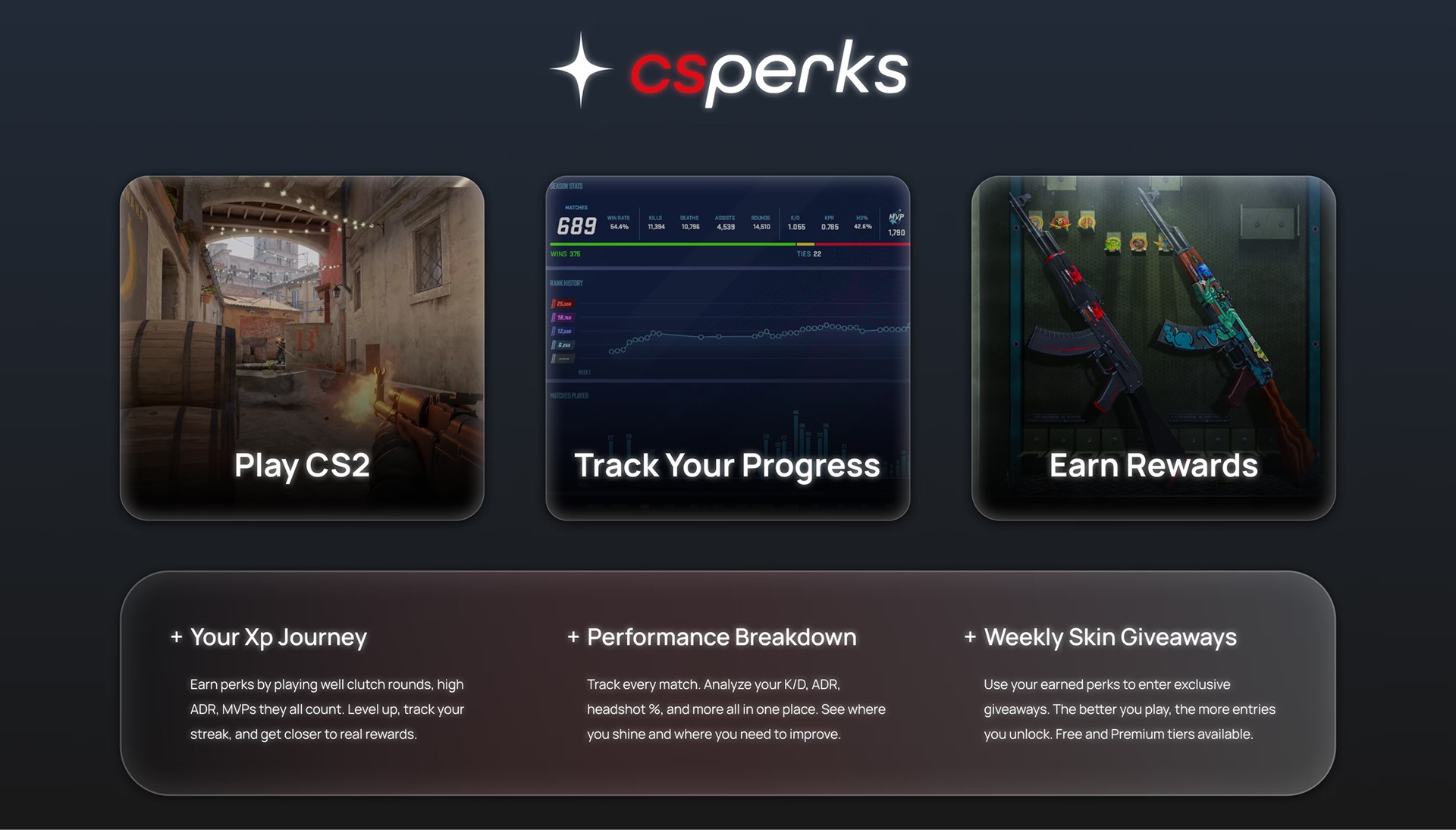 Earn points by playing Counter-Strike, the higher score you have in game, the more rewards you can redeem.