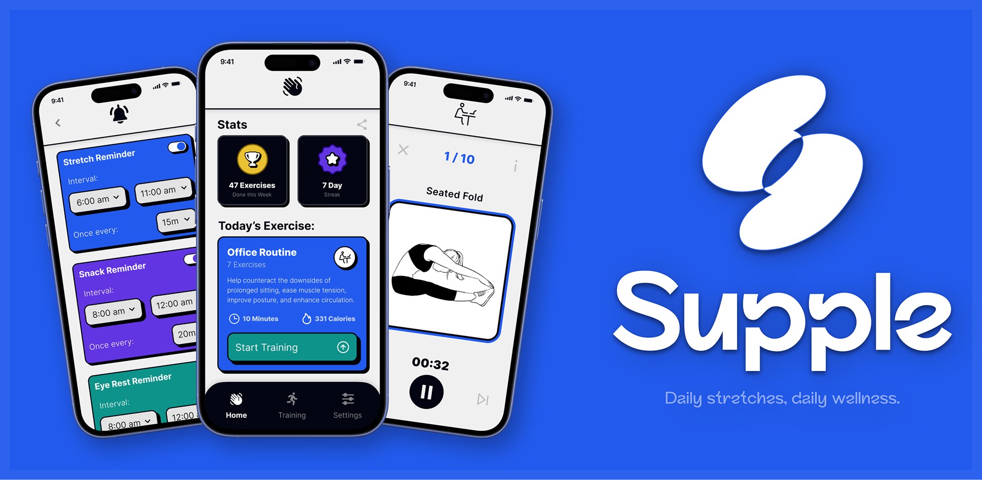 Stay physically flexible, focused, and supple, letting you take care of your body with gentle stretches, movement routines, and reminders.